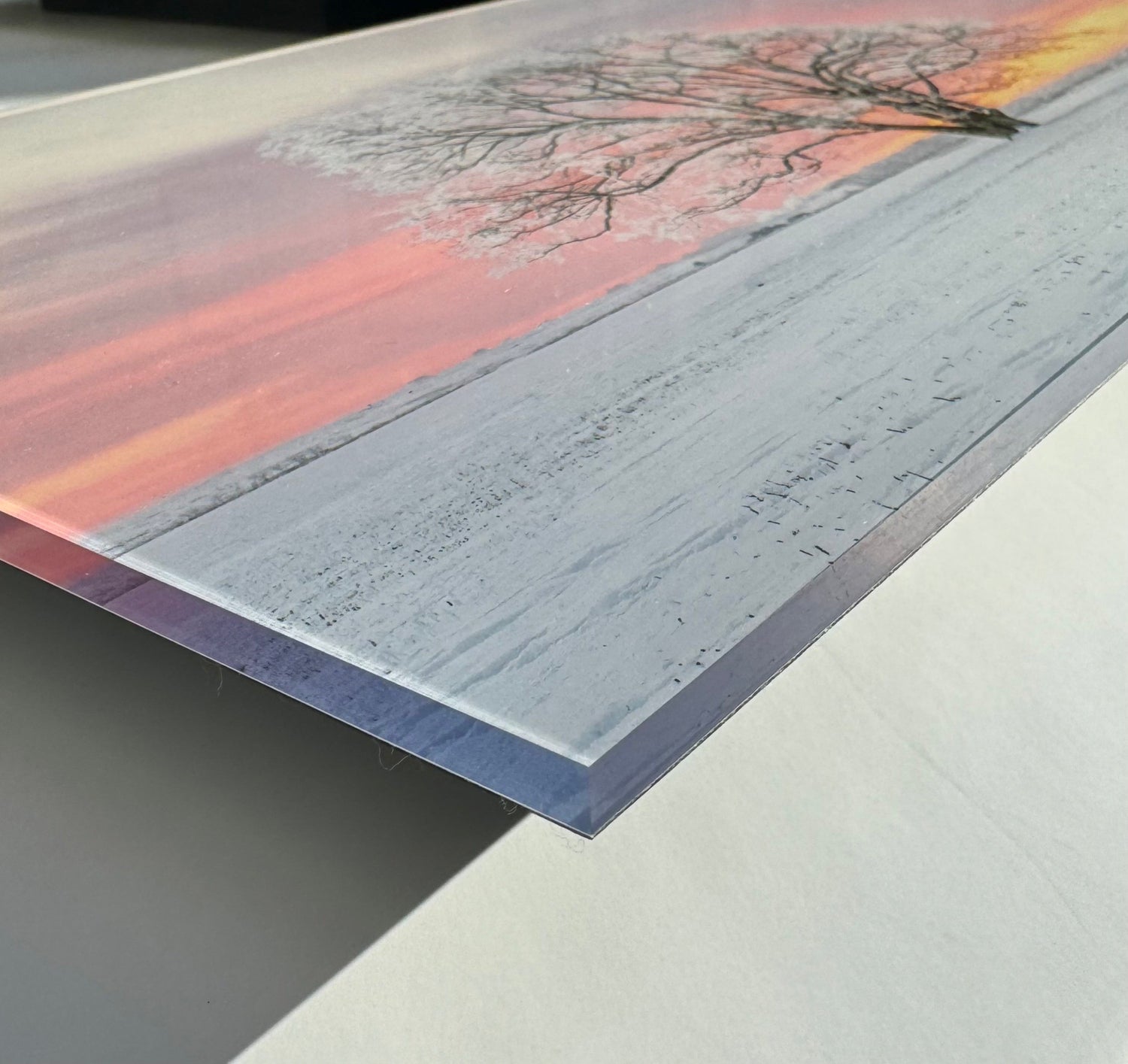 透明感のあるアクリルボードに映し出す方式で制作しておりますので、写真そのものの階調を豊かに再現するだけでなく、美しさと耐久性を兼ね備えています。